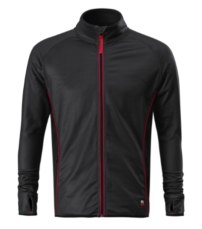 hladký strečový rychleschnoucí materiál, rovný střih s bočními švy, celopropínací reverzní spirálový zip s krytkou brady, vnitřní průkrčník začištěn páskou , raglánové rukávy, manžety s otvorem pro palec, kapsy na zip, lemování elastickým proužkem, kontrastní prvky, poutko na zavěšení